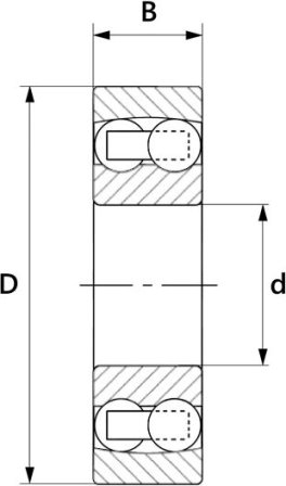 В таблице ниже перечислены размеры и характеристики двухрядных шариковых подшипников с цилиндрическим внутренним кольцом.