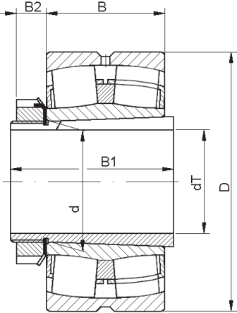 Сферические роликоподшипники имеют неразъёмную конструкцию: внутреннее кольцо, сепаратор и симметричные сферические ролики свободно самоустанавливаются на внутренней сферической поверхности наружного кольца, что компенсирует угловые перекосы. Благодаря форме тел качения и контактной поверхности дорожек качения обеспечивается равномерное распределение контактных напряжений. Такие подшипники воспринимают высокие радиальные и действующие в обоих направлениях осевые нагрузки.