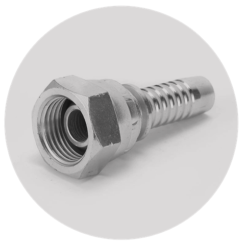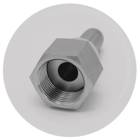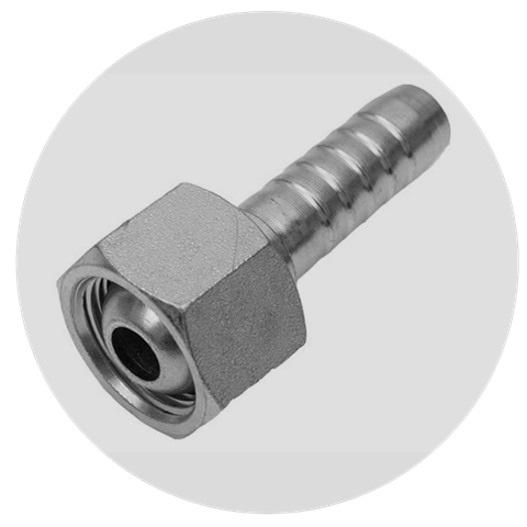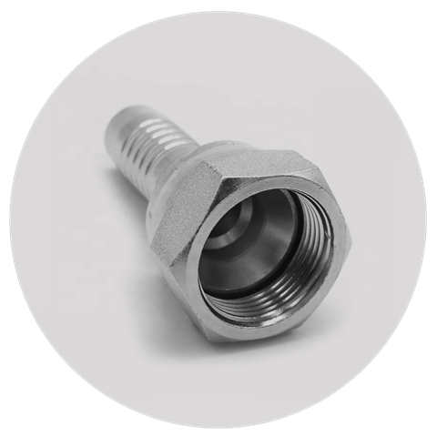 Конус 60°, британская трубная дюймовая резьба. Фитинг с внутренней резьбой (гайка) имеет глубоко посаженный незначительно выступающий внешний конус.