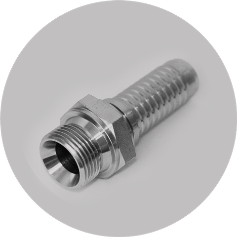 Конус 24°, фитинг с внешним конусом уплотняется резиновым кольцом. В зависимости от давления различают легкую (DKOL) или тяжелую серию (DKOS), отличить которые друг от друга визуально крайне проблематично, поэтому лучше пользоваться таблицей. Один из наиболее часто встречающихся типов соединений для рукавов высокого давления в Беларуси.