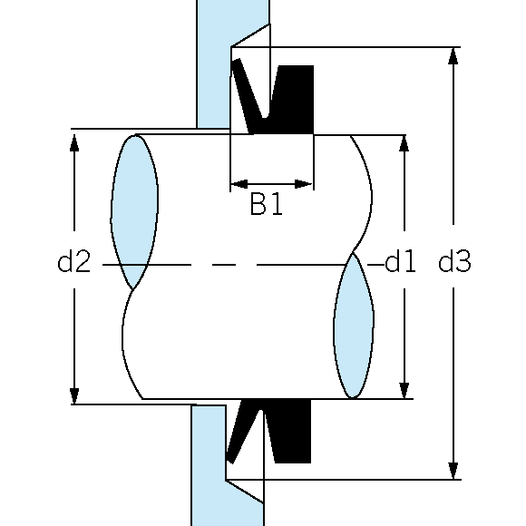 V-образное кольцо типа VL имеет узкую основную часть, что позволяет использовать его в узлах с ограниченным пространством для установки. Чаще всего используются в сочетании с лабиринтными уплотнениями.