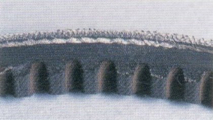 Признаки: на задней стороне ремня наблюдаются небольшие отверстия; видны впадины, вокруг которых может наблюдаться растрепанная ткань.