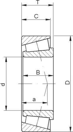 В таблице ниже перечислены размеры и характеристики однорядных конических роликовых подшипников.